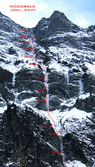 Moonwalk – 1000m, WI6/M7, Benedikt Purner & Albert Leichtfried, 3.12.2009