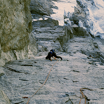Jde o skalní lezení v plotnách, v koutech a sokolech. Cesta je z velké ásti vynýtovaná. Slouží také jako sestupová (sla?ovací) trasa z Pt.Jorasses.